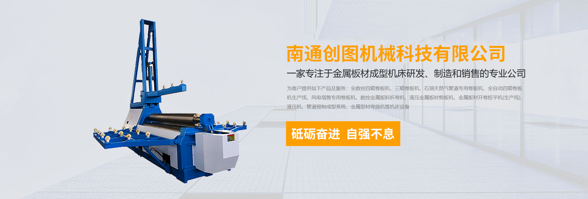 數(shù)控折彎?rùn)C(jī),剪板機(jī),刨槽機(jī),全數(shù)控四輥卷板機(jī)、三輥卷板機(jī)、石油天然氣管道專(zhuān)用卷板機(jī)、全自動(dòng)四輥卷板機(jī)生產(chǎn)線、風(fēng)電塔筒專(zhuān)用卷板機(jī)、金屬板材開(kāi)卷校平機(jī)(生產(chǎn)線)、液壓機(jī)、管道預(yù)制成型系統(tǒng)、金屬型材彎曲機(jī)等機(jī)床設(shè)備,公司以精湛的設(shè)計(jì)能力,雄厚的加工制造能力,完善的售后服務(wù)能力,產(chǎn)品暢銷(xiāo)國(guó)內(nèi)20多個(gè)省、直轄市,并遠(yuǎn)銷(xiāo)德國(guó)、阿根廷、俄羅斯、印尼、伊朗等30多個(gè)國(guó)家和地區(qū)。